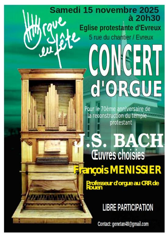 Samedi 15 novembre, à 20 h 30 au temple d’Évreux